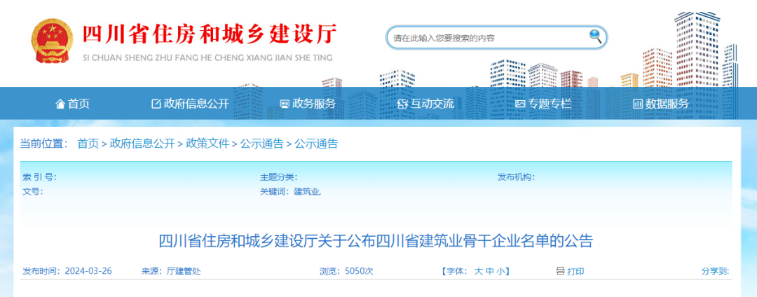 3月25日,四川省住房和城鄉建設廳公布四川省建筑業骨干企業名單。