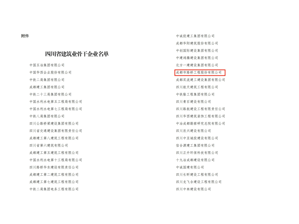 345家企業被評選為四川省建筑業骨干企業,成都路橋成功入選。
