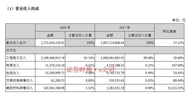 在2018年中,成都路橋完成營(yíng)業(yè)收入27.26億元,同比增長(zhǎng)37.15%;但實(shí)現(xiàn)凈利潤(rùn)僅2132.52萬(wàn)元,同比下降4.91%。