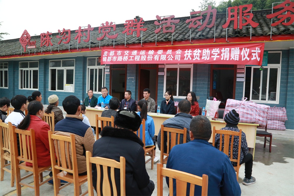 11月15日上午,市交委黨組成員、機關黨委書記王宏同志攜成都市路橋工程股份有限公司到對口扶貧村邛崍市水口鎮陳溝村開展捐資助學和“走基層”過冬物資捐贈活動,現場共捐資人民幣3萬元用于幫扶11名貧困學生,捐贈冬衣186件。