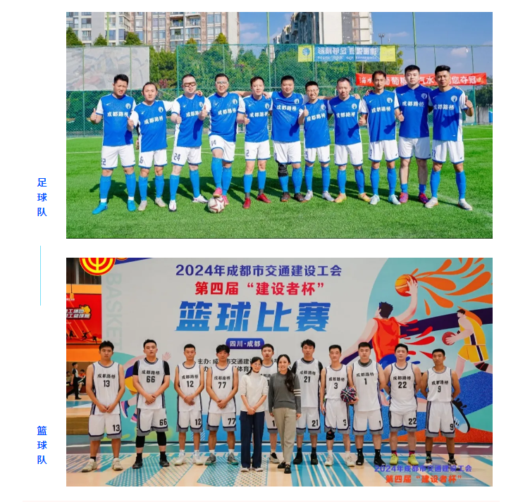 近日,由成都市市政工程協(xié)會主辦的“強鏈杯”足球友誼賽及成都市交通建設工會主辦的第四屆“建設者杯”籃球比賽圓滿落幕。成都路橋工會積極響應活動號召,組建足球隊和籃球隊參加活動,取得優(yōu)異成績。