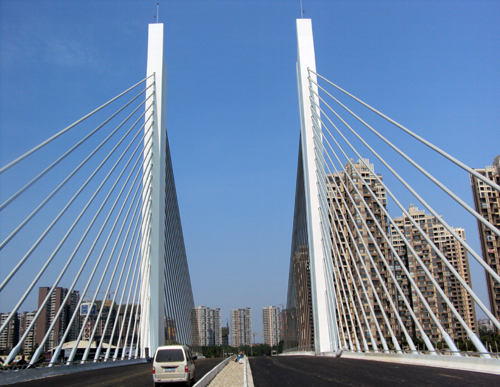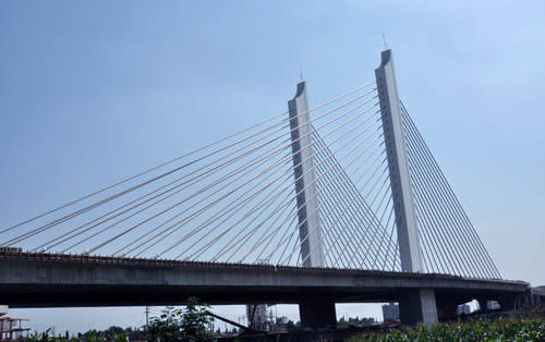 雙華路(牧華路)遷建工程錦江斜拉橋是雙流縣公路網(wǎng)規(guī)劃重要組成部分——雙華路南遷道路的樞紐工程,它的建設(shè)不僅解決了華陽至東升的交通問題,而且將南部各重要組團(tuán)和東部龍泉驛組團(tuán)一并連通,成為城市東南部邊緣重要的一條交通走廊。
