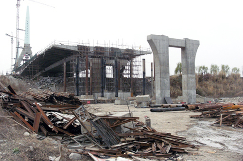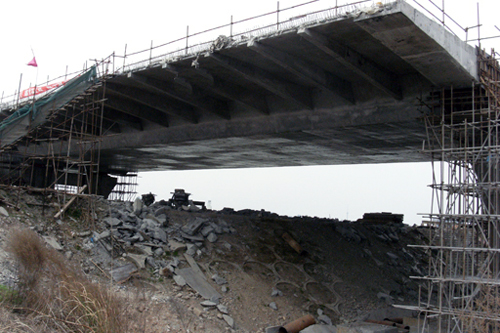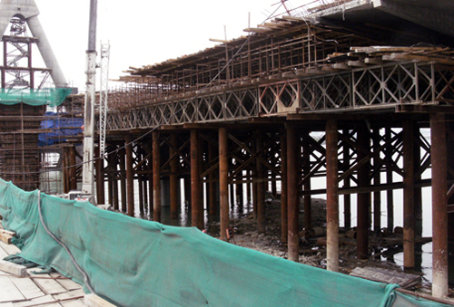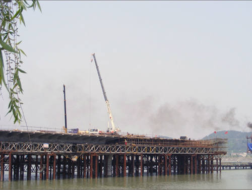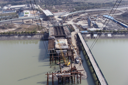 夏季洪峰過后東、西兩岸工區(qū)正常施工