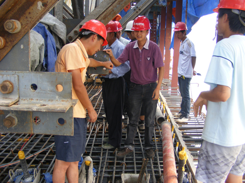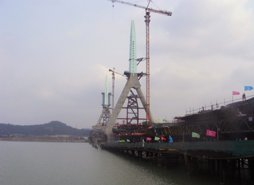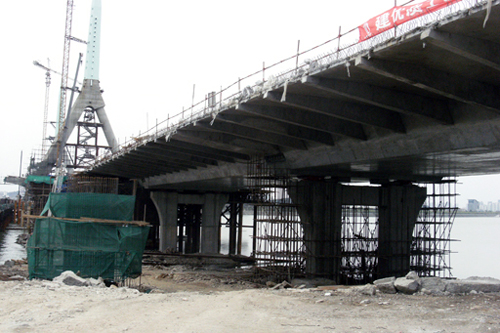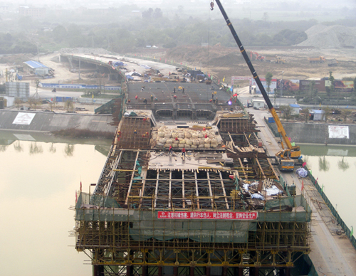 1月5日晚,西岸工區(qū)邊跨合攏砼澆筑現(xiàn)場(chǎng)